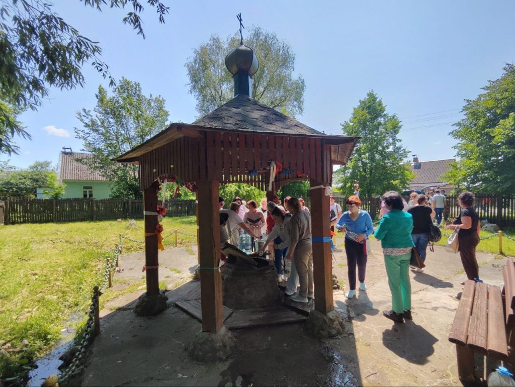 Далее был переезд в д. Тумин с посещением источника и часовни Понтелеймона Целителя. Вода в источнике издавна считается целебной, так как он располагается около залежей голубой глины.